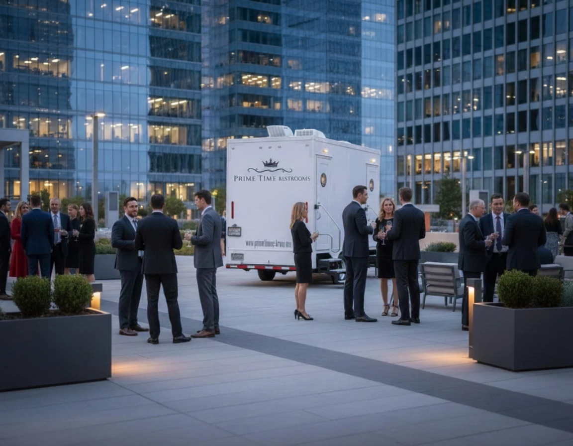 Make a corporate event restroom trailer a centerpiece of your professional impression. Our corporate restrooms are ideal for the conference, product launch, and grand office party as they provide a pure, comfortable, and convenient atmosphere. The corporate event restroom trailer options are flexible, keeping your staff and guests happy and productive.